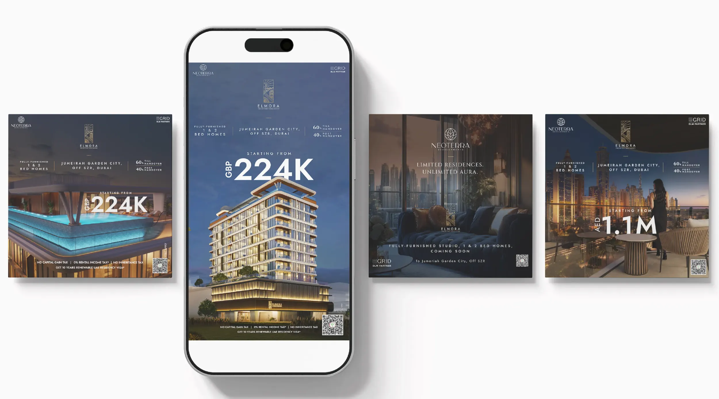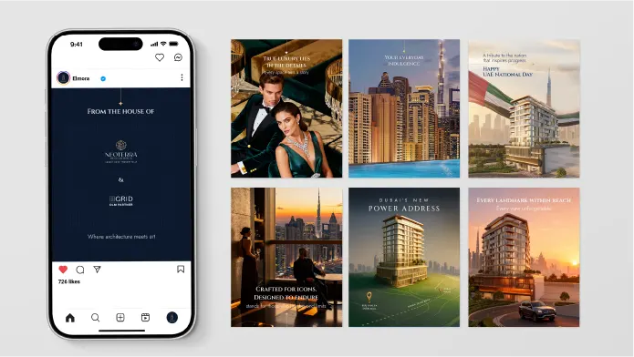 A luxury real estate experience crafted through immersive landing pages, AI-driven visuals, and premium social media, designed to evoke aspiration and exclusivity.